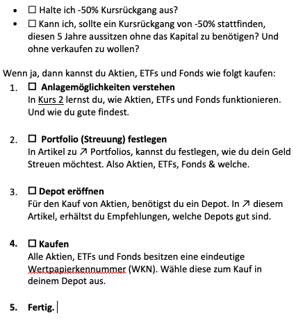 Checkliste: So kauft man Aktien, ETFs & Fonds