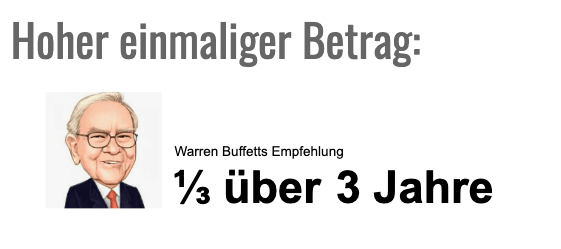 Warren Buffetts Empfehlung ist, große Einmalbeträge über 3 Jahre gestreckt zu investieren.